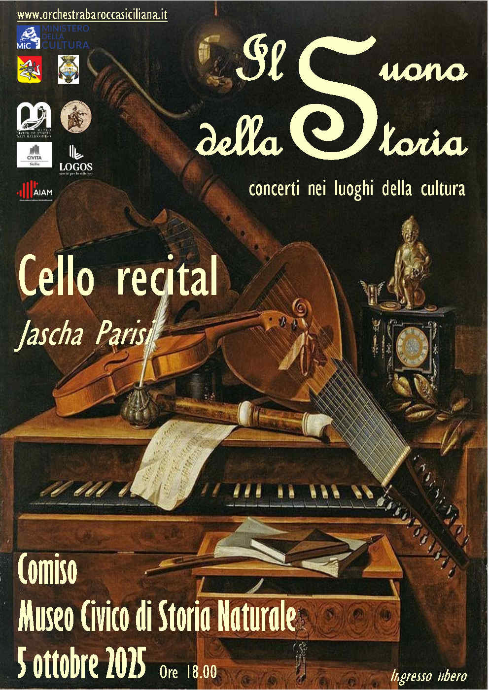 Domenica 5 ottobre alle ore 18:00 approda al Museo Civico di Storia Naturale di Comiso Il Suono della Storia, concerto inserito nella minirassegna itinerante dell’Orchestra Barocca Siciliana nei Musei e Luoghi della Cultura. Giunta alla sua seconda edizione, ha già visto i solisti dell’orchestra esibirsi presso la Galleria Regionale di Palazzo Bellomo e Castel Maniace a Siracusa e al Convento di Santa Maria degli Angeli ad Assoro.